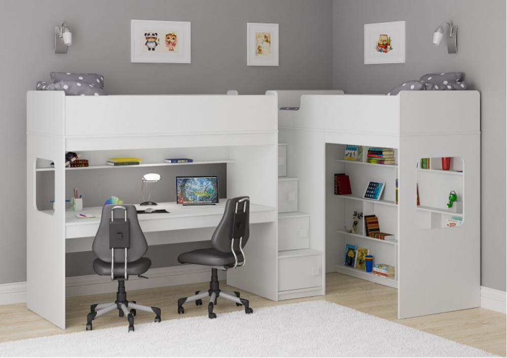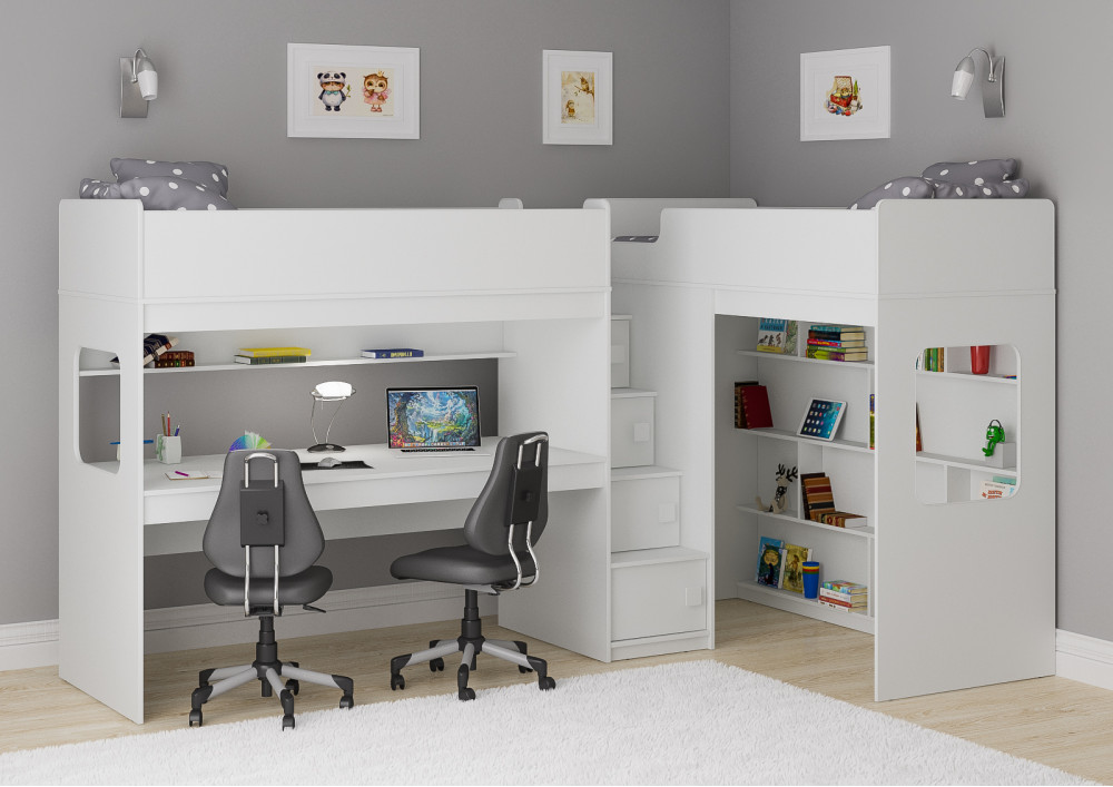Две кровати, огромный стол, игровая зона – одна лестница. Идеальный вариант для двоих детей!