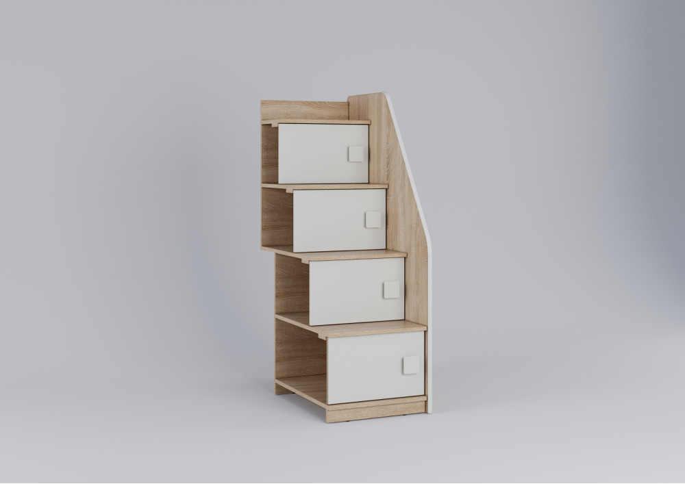 Лестница из 4 ступеней, сочетается со всеми кроватями серии A,B,C,D,E,F. Предназначена для боковой установки к кровати.