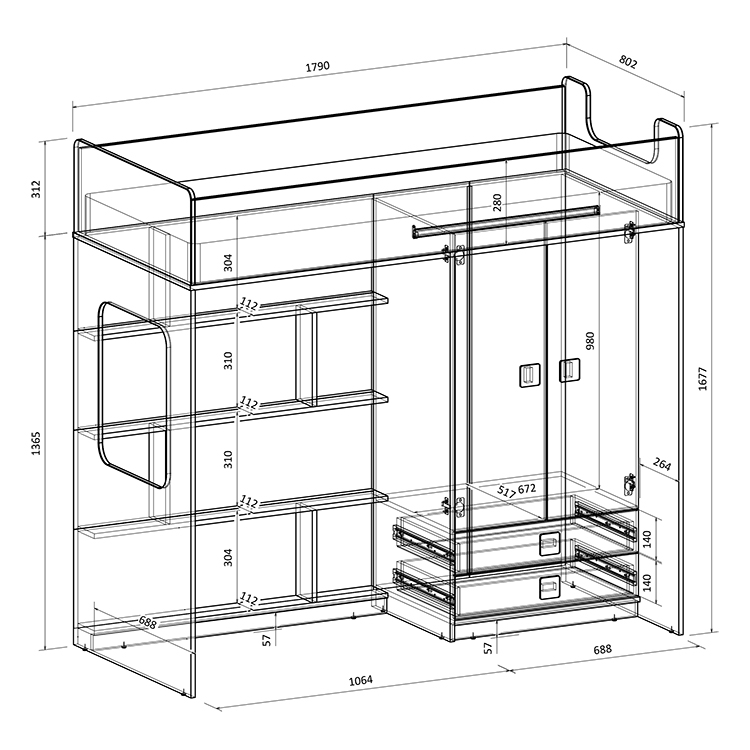 Вместительный шкаф для хранения одежды, белья,игрушек или иных вещей.