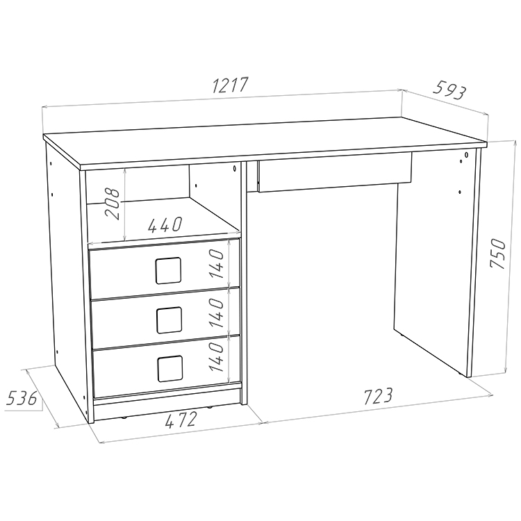 Три выкатных ящика стола обеспечат удобное хранение канцелярии,письменных,учебных и прочих принадлежностей.